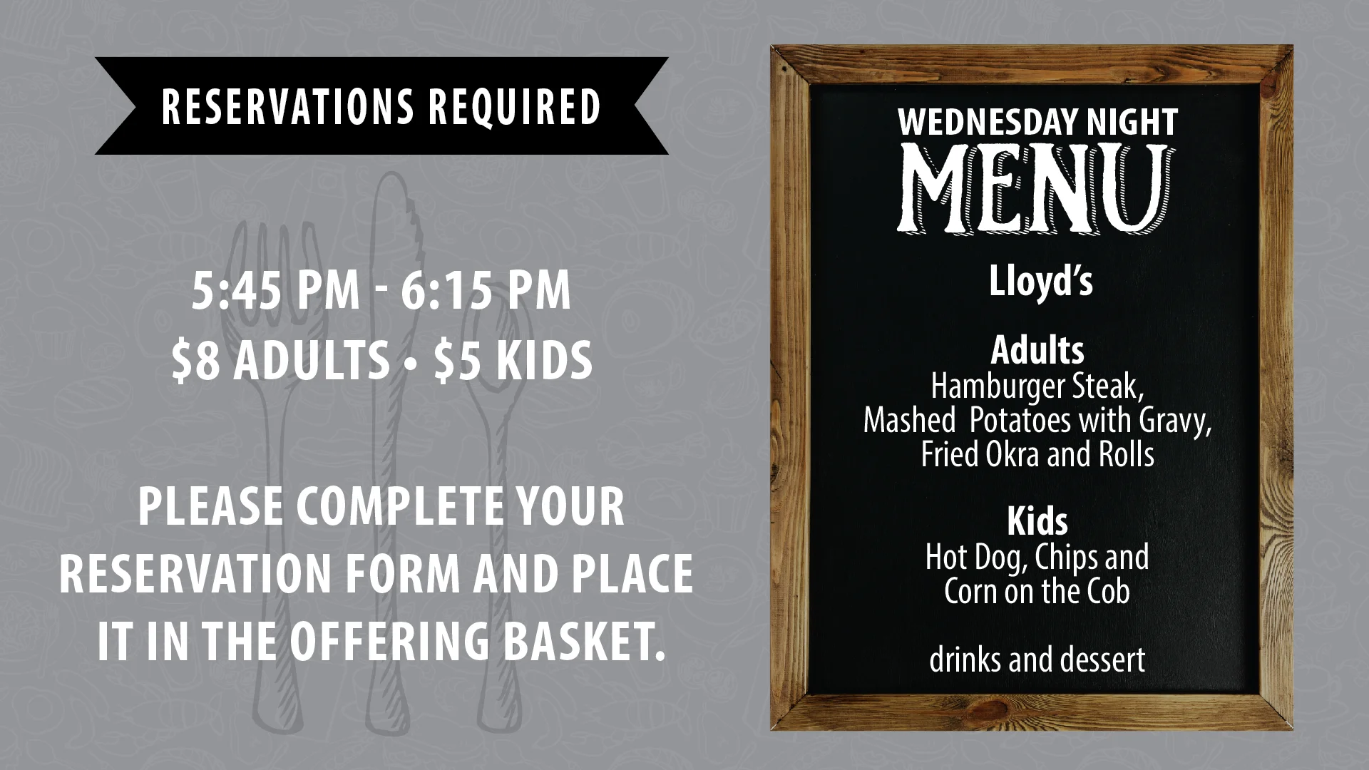 Wednesday Night Menu