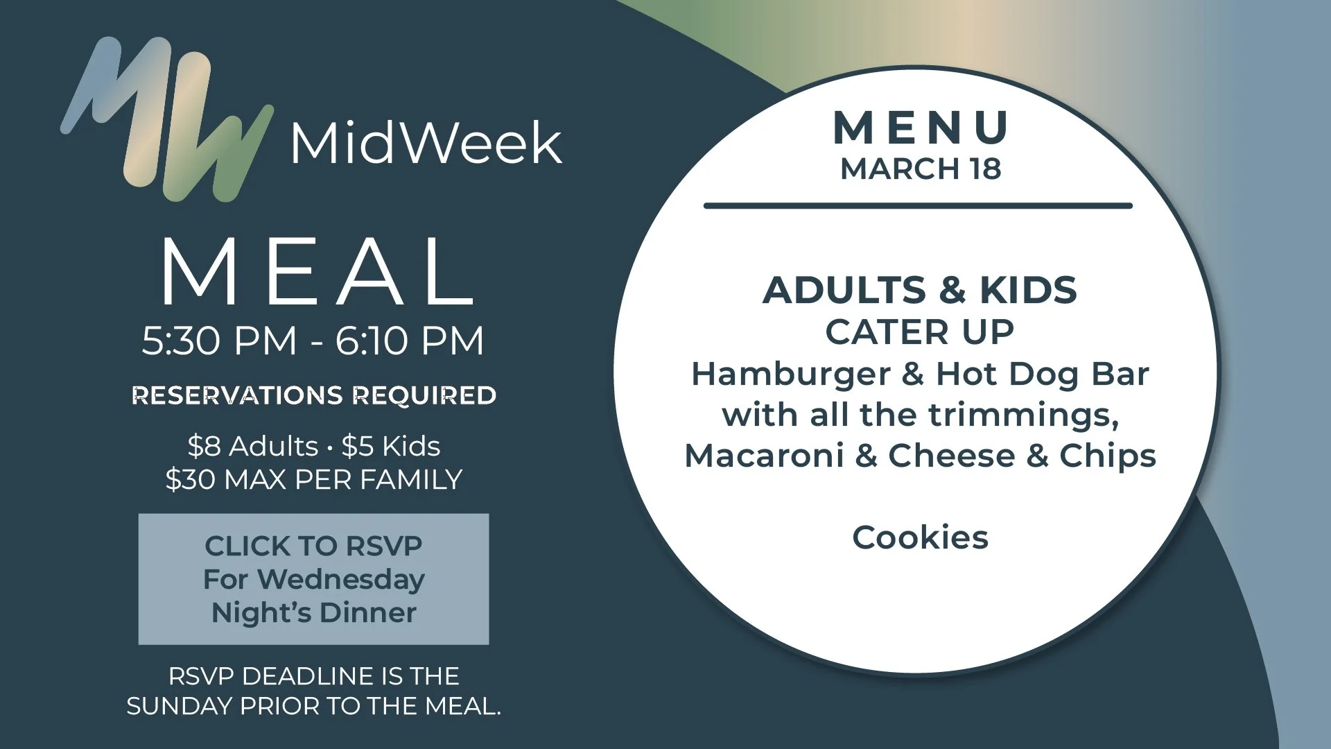 MAKE SURE TO RSVP FOR THE WEDNESDAY MEAL BY SUNDAY NIGHT! CLICK BELOW TO RSVP!